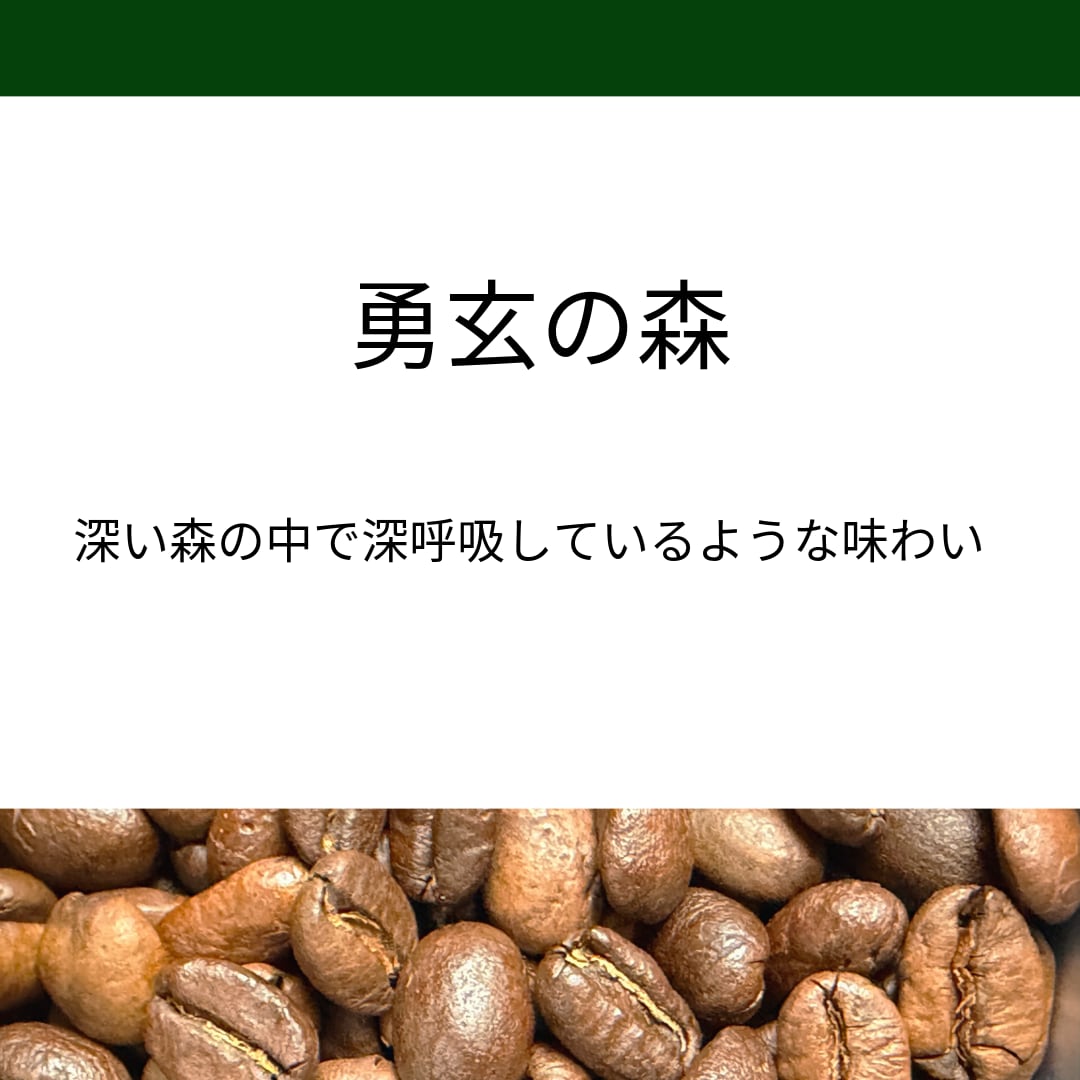 「幽玄」という言葉は、日本の美意識で「奥深く、はかり知れないこと」を意味しています。さらにそこから、『幽』の字をこのブレンドの発案者でもある 友人の名前『勇』へと変えて、勇玄の森と名付けました。